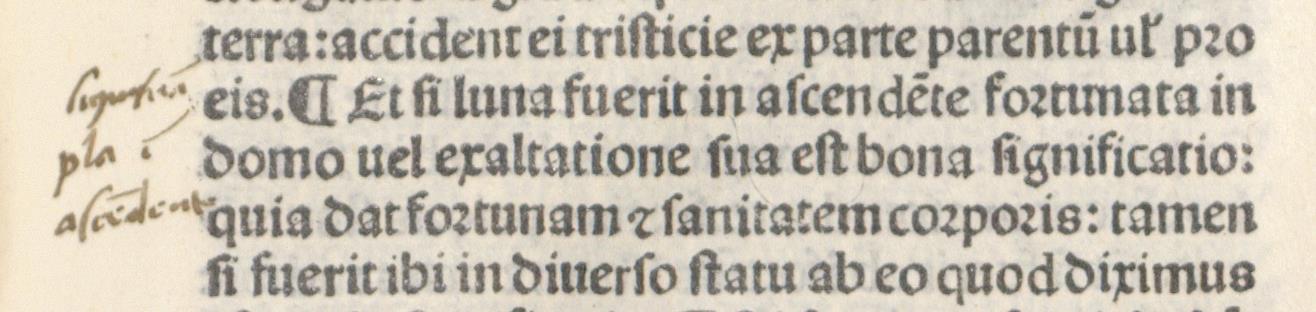 Copernicus’s Annotation Annotation ID: 8 Authentic: Authentic Non-Authentic Unknown Volume: Czartoryski number: 1 Library: Uppsala. Sign: Copernicana 6 #https://www.alvin-portal.org/alvin/view.jsf?dswid=9974&searchType=EXTENDED&query=&aq=%5B%5B%7B%22HOST%22%3A%22alvin-record%3A112350%22%7D%5D%5D&aqe=%5B%5D&af=%5B%5D&pid=alvin-record%3A54364&c=2#alvin-record%3A54364 Book: ID: 2 Author: Haly Albohazen. Title:In iudiciis astrorum https://www.alvin-portal.org/alvin/view.jsf?pid=alvin-record:54466 URL: https://www.alvin-portal.org/alvin/imageViewer.jsf?dsId=ATTACHMENT-0069&pid=alvin-record:54466 Folio: 66r Transliteration: ☋ in ascendente privat visum. Transcription: ☋ in ascendente privat visum. English Translation: The Tail of the Dragon in the ascendant causes blindness. Image: [Download] Resolution dpi: Style: Terminus Post Quem: Terminus Ante Quem: Unknown Hand A (Gothic) Hand B (Humanistic) Mixed Comments: Scan page 69 This annotation is omitted in NCGA. Volume Book Home Search Previous Back Next