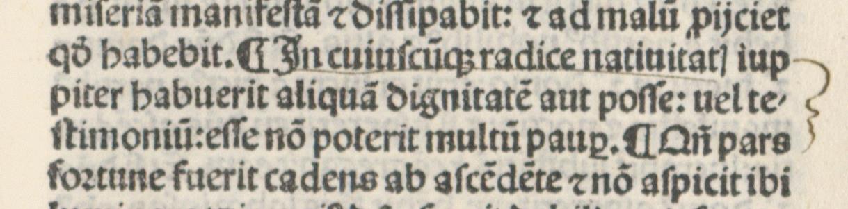 Copernicus’s Annotation Annotation ID: 21 Authentic: Authentic Non-Authentic Unknown Volume: Czartoryski number: 1 Library: Uppsala. Sign: Copernicana 6 #https://www.alvin-portal.org/alvin/view.jsf?dswid=9974&searchType=EXTENDED&query=&aq=%5B%5B%7B%22HOST%22%3A%22alvin-record%3A112350%22%7D%5D%5D&aqe=%5B%5D&af=%5B%5D&pid=alvin-record%3A54364&c=2#alvin-record%3A54364 Book: ID: 2 Author: Haly Albohazen. Title:In iudiciis astrorum https://www.alvin-portal.org/alvin/view.jsf?pid=alvin-record:54466 URL: https://www.alvin-portal.org/alvin/imageViewer.jsf?dsId=ATTACHMENT-0072&pid=alvin-record:54466 Folio: 69ra Image: [Download] Resolution dpi: Style: Terminus Post Quem: Terminus Ante Quem: Unknown Hand A (Gothic) Hand B (Humanistic) Mixed Comments: Scan page 72. B13. Sig. 69ra =same chapter Marked in the margin and partly underlined: In cuiuscumque radice nativitatis Iuppiter habuerit aliquam dignitatem aut posse vel testimonium, esse non poterit multum pauper… Volume Book Home Search Previous Back Next