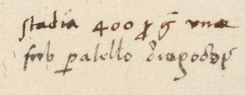 Copernicus’s Annotation Annotation ID: 3 Authentic: Authentic Non-Authentic Unknown Volume: Czartoryski number: 15 Library: Uppsala. Sign: Copernicana 45 (previous Incunab. 32:9) https://www.alvin-portal.org/alvin/view.jsf?pid=alvin-record:80554 Book: ID: 1 Author: Ptolemaeus, Claudius. Title:Cosmographia https://www.alvin-portal.org/alvin/view.jsf?pid=alvin-record:80554 URL: https://www.alvin-portal.org/alvin/imageViewer.jsf?dsId=ATTACHMENT-0049&pid=alvin-record:80554 Folio: a6r Transcription: stadia 400 pro gradu vno sub paralello δια ροδον German Translation: 400 Stadien für einen (Längen-)Grad auf dem Parallelkreis durch Rhodos. Image: [Download] Resolution dpi: Style: Terminus Post Quem: Terminus Ante Quem: Unknown Hand A (Gothic) Hand B (Humanistic) Mixed Comments: Alvin's scan page 49 Volume Book Home Search Previous Back Next
