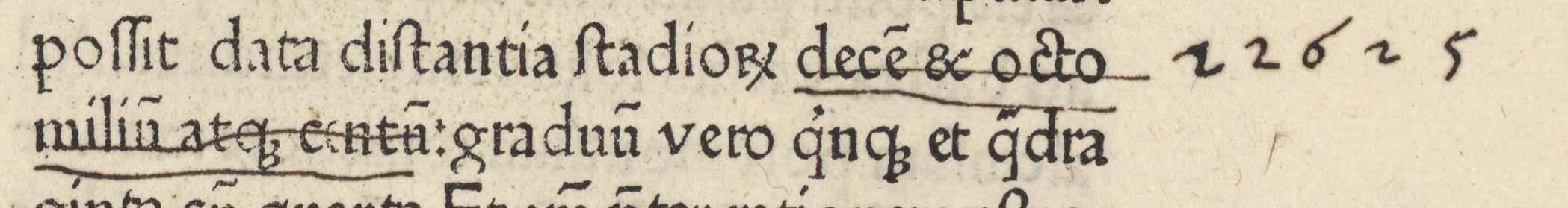 Copernicus’s Annotation Annotation ID: 4 Authentic: Authentic Non-Authentic Unknown Volume: Czartoryski number: 15 Library: Uppsala. Sign: Copernicana 45 (previous Incunab. 32:9) https://www.alvin-portal.org/alvin/view.jsf?pid=alvin-record:80554 Book: ID: 1 Author: Ptolemaeus, Claudius. Title:Cosmographia https://www.alvin-portal.org/alvin/view.jsf?pid=alvin-record:80554 URL: https://www.alvin-portal.org/alvin/imageViewer.jsf?dsId=ATTACHMENT-0049&pid=alvin-record:80554 Folio: a6r Transcription: 22625 German Translation: Copernicus verbesserte diesen Wert zu 22.625 Stadien, wie er sich auch in den modernen Editionen findet. Image: [Download] Resolution dpi: Style: Terminus Post Quem: Terminus Ante Quem: Unknown Hand A (Gothic) Hand B (Humanistic) Mixed Comments: Alvin's scan page Volume Book Home Search Previous Back Next