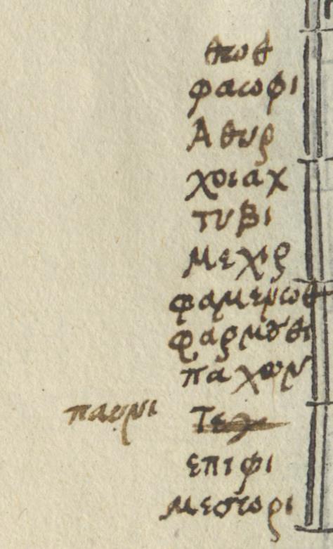 Copernicus’s Annotation Annotation ID: 43 Authentic: Authentic Non-Authentic Unknown Volume: Czartoryski number: 17 Library: Uppsala. Sign: Copernicana 17 https://www.alvin-portal.org/alvin/view.jsf?pid=alvin-record:80888 Book: ID: 1 Author: Ptolemaeus, Claudius. Title:Almagestum seu Magnae Constructionis Liber https://www.alvin-portal.org/alvin/view.jsf?pid=alvin-record:80888 URL: https://www.alvin-portal.org/alvin/imageViewer.jsf?dsId=ATTACHMENT-0070&pid=alvin-record:80888 Folio: 62v Transcription: θωθ φαωφι Αθυρ χοιαχ τυβι μεχιρ φαρμενωθ φαρμουθι παχων παυνι επιφι μεζωρι Image: [Download] Resolution dpi: Style: Terminus Post Quem: Terminus Ante Quem: Unknown Hand A (Gothic) Hand B (Humanistic) Mixed Comments: Alvin's scan page 70 Volume Book Home Search Previous Back Next