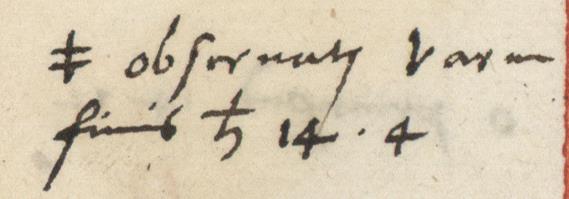Copernicus’s Annotation Annotation ID: 10 Authentic: Authentic Non-Authentic Unknown Volume: Czartoryski number: 18 Library: Uppsala Library of the Astronomical Observatory. Sign: Coll. Hjorter G.I. 51 Book: ID: 1 Author: Stoeffler, Johannes. Title:Calendarium Romanum magnum, Caesaree maiestati dicatum https://www.alvin-portal.org/alvin/view.jsf?pid=alvin-record:80120 URL: https://www.alvin-portal.org/alvin/imageViewer.jsf?dsId=ATTACHMENT-0112&pid=alvin-record:80120 Folio: D2v Transcription: obseruata Varm[iae] finis hora 14.4 German Translation: Beobachtet im Ermland, Ende: 7. 10., 02:04 Uhr Image: [Download] Resolution dpi: Style: Terminus Post Quem: Terminus Ante Quem: Unknown Hand A (Gothic) Hand B (Humanistic) Mixed Comments: Alvin's scan page 112 Volume Book Home Search Previous Back Next