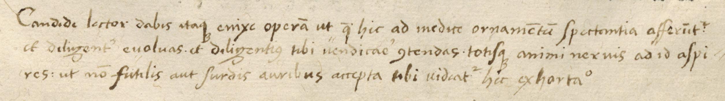 Copernicus’s Annotation Annotation ID: 1 Authentic: Authentic Non-Authentic Unknown Volume: Czartoryski number: 27 Library: Uppsala. Sign: Copernicana 24 https://www.alvin-portal.org/alvin/view.jsf?pid=alvin-record:112385 Book: ID: 3 Author: Galen. Title:De affectorum locorum notitia. Trans. by Guilielmus Copus of Basel https://www.alvin-portal.org/alvin/view.jsf?pid=alvin-record:87109 URL: https://www.alvin-portal.org/alvin/imageViewer.jsf?dsId=ATTACHMENT-0005&pid=alvin-record:87109 Folio: 3v Transliteration: Candide lector dabis itaue enixe operam, ut q hic ad medicinae ornamentum spectantia afferuntur et diligenter euoluas et diligentius tibi uendicare contendas . totisue animi neruis ad id aspires : vt no futilis aut surdis auribus accepta tibi uideatur hec exhortatio Transcription: Candide lector dabis itaue enixe operam, ut q hic ad medicinae ornamentum spectantia afferuntur et diligenter euoluas et diligentius tibi uendicare contendas . totisue animi neruis ad id aspires : vt no futilis aut surdis auribus accepta tibi uideatur hec exhortatio Image: [Download] Resolution dpi: Style: Terminus Post Quem: Terminus Ante Quem: Unknown Hand A (Gothic) Hand B (Humanistic) Mixed Comments: scan page 5 Volume Book Home Search Previous Back Next