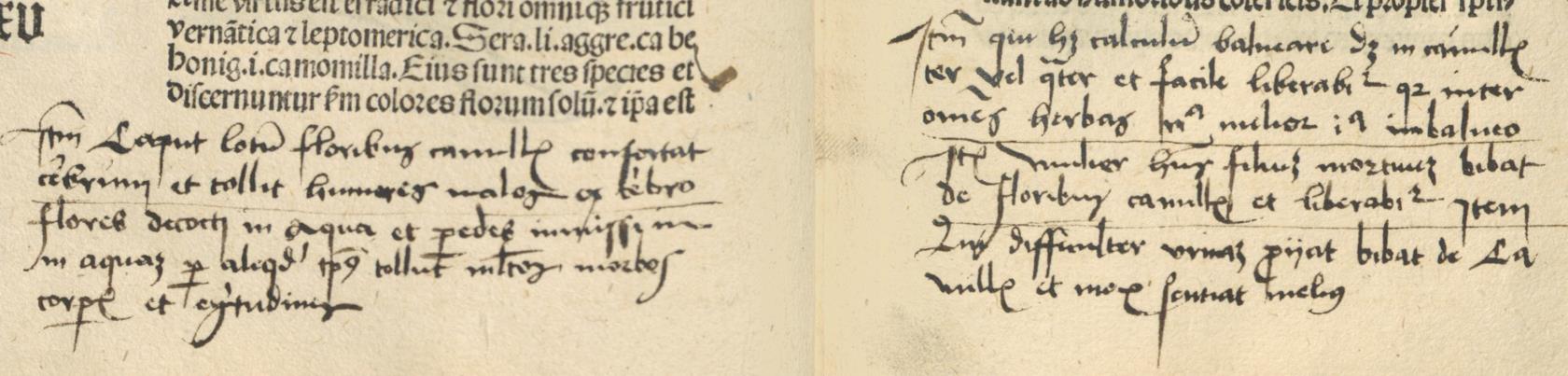 Copernicus’s Annotation Annotation ID: 10 Authentic: Authentic Non-Authentic Unknown Volume: Czartoryski number: 29 Library: Uppsala. Sign: Copernicana 15 https://www.alvin-portal.org/alvin/view.jsf?pid=alvin-record:80419 Book: ID: 1 Author: Ed. Johannes de Cuba. Title:Hortus sanitatis https://www.alvin-portal.org/alvin/view.jsf?pid=alvin-record:80518 URL: https://www.alvin-portal.org/alvin/view.jsf?pid=alvin-record:80419 Folio: e6v-f1 Transliteration: Item Caput lotum floribus camill(arum) confortât cerebrum et tollit humores malos ex cerebro, flores decoctj in aqua et pedes inmissi in aquam per aliquod tempus tollunt multos morbos corporis et egritudines. Item qui habet calculum balneare débet in camillis ter vel quater et facile libera- bitur, quia inter omnes herbas nulla melior ilia in balneo. Item mulier habens filium mortuum bibat de floribus camill(arum) et liberabitur. Item Qui difficulter vrinam proijcit bibat de Camillis et mox sentiat melius. Transcription: Item Caput lotum floribus camill(arum) confortât cerebrum et tollit humores malos ex cerebro, flores decoctj in aqua et pedes inmissi in aquam per aliquod tempus tollunt multos morbos corporis et egritudines. Item qui habet calculum balneare débet in camillis ter vel quater et facile libera- bitur, quia inter omnes herbas nulla melior ilia in balneo. Item mulier habens filium mortuum bibat de floribus camill(arum) et liberabitur. Item Qui difficulter vrinam proijcit bibat de Camillis et mox sentiat melius. German Translation: Ebenso stärkt das Waschen des Kopfes mit Kamillenblüten das Gehirn und entfernt schlechte Säfte aus dem Gehirn. Die Blüten beseitigen, nachdem sie in Wasser gekocht und die Füße für einige Zeit in das Wasser getaucht wurden, viele Krankheiten und Gebrechen des Körpers. Ebenso soll, wer einen Stein hat, drei- oder viermal in Kamillenblüten baden, und er wird bequem davon befreit werden, weil unter allen Kräutern keines besser ist als jenes für ein Bad. Ebenso soll eine Frau, die ein totes Kind trägt, von Kamillenblüten trinken, und sie wird befreit werden. Ebenso soll, wer schwer Wasser läßt, von Kamillen trinken, und er dürfte sich bald besser fühlen. Image: [Download] Resolution dpi: Style: Terminus Post Quem: Terminus Ante Quem: Unknown Hand A (Gothic) Hand B (Humanistic) Mixed Comments: Scan page 39 Volume Book Home Search Previous Back Next
