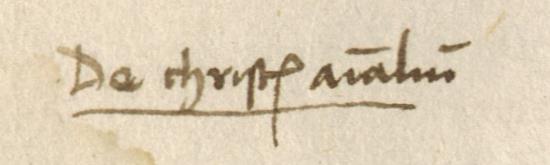 Copernicus’s Annotation Annotation ID: 22 Authentic: Authentic Non-Authentic Unknown Volume: Czartoryski number: 48 Library: Uppsala. Sign: Copernicana 21 https://www.alvin-portal.org/alvin/view.jsf?pid=alvin-record:80527 Book: ID: 1 Author: Plinius Secundus. Title:Historia naturalis https://www.alvin-portal.org/alvin/view.jsf?pid=alvin-record:80527 URL: https://www.alvin-portal.org/alvin/imageViewer.jsf?dsId=ATTACHMENT-0096&pid=alvin-record:80553 Folio: k4v Transcription: De christis animalium Image: [Download] Resolution dpi: Style: Terminus Post Quem: Terminus Ante Quem: Unknown Hand A (Gothic) Hand B (Humanistic) Mixed Comments: Alvin's scan page 96 Volume Book Home Search Previous Back Next
