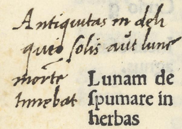 Copernicus’s Annotation Annotation ID: 6 Authentic: Authentic Non-Authentic Unknown Volume: Czartoryski number: 23 Library: Uppsala. Sign: Copernicana 30 https://www.alvin-portal.org/alvin/view.jsf?pid=alvin-record:102920 Book: ID: 1 Author: Apuleius, Lucius Madaurensis. Title:Asinus aureus [cum commento Philippi Beroaldi] https://www.alvin-portal.org/alvin/view.jsf?pid=alvin-record:102920 URL: https://www.alvin-portal.org/alvin/imageViewer.jsf?dsId=ATTACHMENT-0029&pid=alvin-record:102920 Folio: 6v Transliteration: Antiquitas in de liquio solis aut lune mortem timebat Image: [Download] Resolution dpi: Style: Terminus Post Quem: Terminus Ante Quem: Unknown Hand A (Gothic) Hand B (Humanistic) Mixed Comments: scan page 29 Volume Book Home Search Previous Back Next