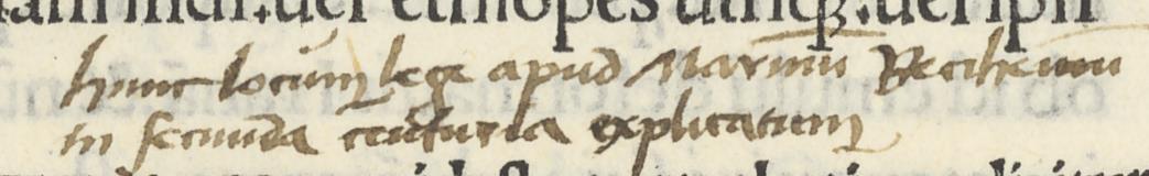 Copernicus’s Annotation Annotation ID: 8 Authentic: Authentic Non-Authentic Unknown Volume: Czartoryski number: 23 Library: Uppsala. Sign: Copernicana 30 https://www.alvin-portal.org/alvin/view.jsf?pid=alvin-record:102920 Book: ID: 1 Author: Apuleius, Lucius Madaurensis. Title:Asinus aureus [cum commento Philippi Beroaldi] https://www.alvin-portal.org/alvin/view.jsf?pid=alvin-record:102920 URL: https://www.alvin-portal.org/alvin/imageViewer.jsf?dsId=ATTACHMENT-0036&pid=alvin-record:102920 Folio: 14r Transliteration: hunc locum lege apud Marinum Becichemum in secunda centuria explicatum Transcription: hunc locum lege apud Marinum Becichemum in secunda centuria explicatum Image: [Download] Resolution dpi: Style: Terminus Post Quem: Terminus Ante Quem: Unknown Hand A (Gothic) Hand B (Humanistic) Mixed Comments: scan page 36 Volume Book Home Search Previous Back Next
