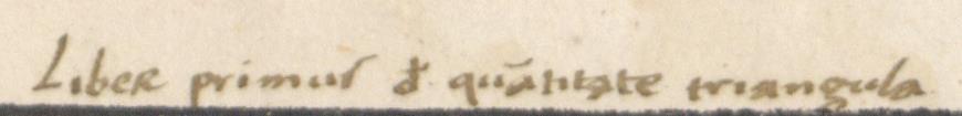 Copernicus’s Annotation Annotation ID: 11 Authentic: Authentic Non-Authentic Unknown Volume: Czartoryski number: 1 Library: Uppsala. Sign: Copernicana 6 #https://www.alvin-portal.org/alvin/view.jsf?dswid=9974&searchType=EXTENDED&query=&aq=%5B%5B%7B%22HOST%22%3A%22alvin-record%3A112350%22%7D%5D%5D&aqe=%5B%5D&af=%5B%5D&pid=alvin-record%3A54364&c=2#alvin-record%3A54364 Book: ID: 1 Author: Euclides. Title:Elementa geometriae https://www.alvin-portal.org/alvin/view.jsf?pid=alvin-record:54364 URL: https://www.alvin-portal.org/alvin/imageViewer.jsf?dsId=ATTACHMENT-0003&pid=alvin-record:54364 Folio: b2r Transcription: Liber primus de quantitate triangula German Translation: 1. Buch: Über die Dreiecksgröße Image: [Download] Resolution dpi: Style: Terminus Post Quem: Terminus Ante Quem: Unknown Hand A (Gothic) Hand B (Humanistic) Mixed Comments: Alvin's scan page 3 Volume Book Home Search Previous Back Next