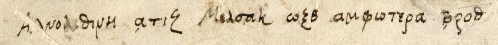 Copernicus’s Annotation Annotation ID: 6 Authentic: Authentic Non-Authentic Unknown Volume: Czartoryski number: 3 Library: Uppsala. Sign: Copernicana 5 https://www.alvin-portal.org/alvin/view.jsf?pid=alvin-record:80408 Book: ID: 1 Author: Crastonus, Johannes. Title:Dictionarium graecum cum interpretatione latina https://www.alvin-portal.org/alvin/view.jsf?pid=alvin-record:80408 URL: https://www.alvin-portal.org/alvin/imageViewer.jsf?dsId=ATTACHMENT-0302&pid=alvin-record:80408 Folio: letzten Blattes Transcription: VArma, difroc, antux, qnoh, kanjoi, knhmh, ituc German Translation: Wagen, Wagensitz, Seitenwand des Wagenstuhls, Radnabe, Radreifen, Speiche, Radkranz. Image: [Download] Resolution dpi: Style: Terminus Post Quem: Terminus Ante Quem: Unknown Hand A (Gothic) Hand B (Humanistic) Mixed Comments: Alvin's scan page 302 Volume Book Home Search Previous Back Next